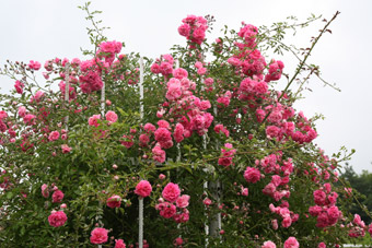 VĂ˝sadba růŞà mezi tak vysokĂŠ keĹe uĹž mĹŻĹže bĂ˝t problĂŠm. KeĹe mohou nejen nepĹimÄĹenÄ stĂnit, ale konkurovat i koĹeny (vysuĹĄovĂĄnĂ). ZĂĄleŞà na druhu, ale keĹe bÄhem let narĹŻstajĂ do vĹĄech stran. Pokud je pak nutno je zkracovat, mĂŠnÄ kvetou. Akci je tedy tĹeba dobĹe podle mĂstnĂch okolnostĂ rozmyslet a vysazovat nĂĄleĹžitÄ daleko od keĹĹŻ. PĹedpoklĂĄdĂĄm, Ĺže pnoucĂ rĹŻĹže budou mĂt vlastnĂ konstrukci (nebudou pĹĂmo na keĹĂch). NejlĂŠpe snad volit odolnĂŠ u nĂĄs dlouhodobÄ osvÄdÄenĂŠ odrĹŻdy. NapĹ.: Alchymist, American Pillar, Dorothy Perkins, Dortmund, Indra, LudvĂk VeÄeĹa, MĂr, New Dawn, RudolfĂna, RĹŻĹže OlivetskĂĄ, Super Dorothy, Super Excelsa, Sympathie, Venusta Pendula, Vltava.